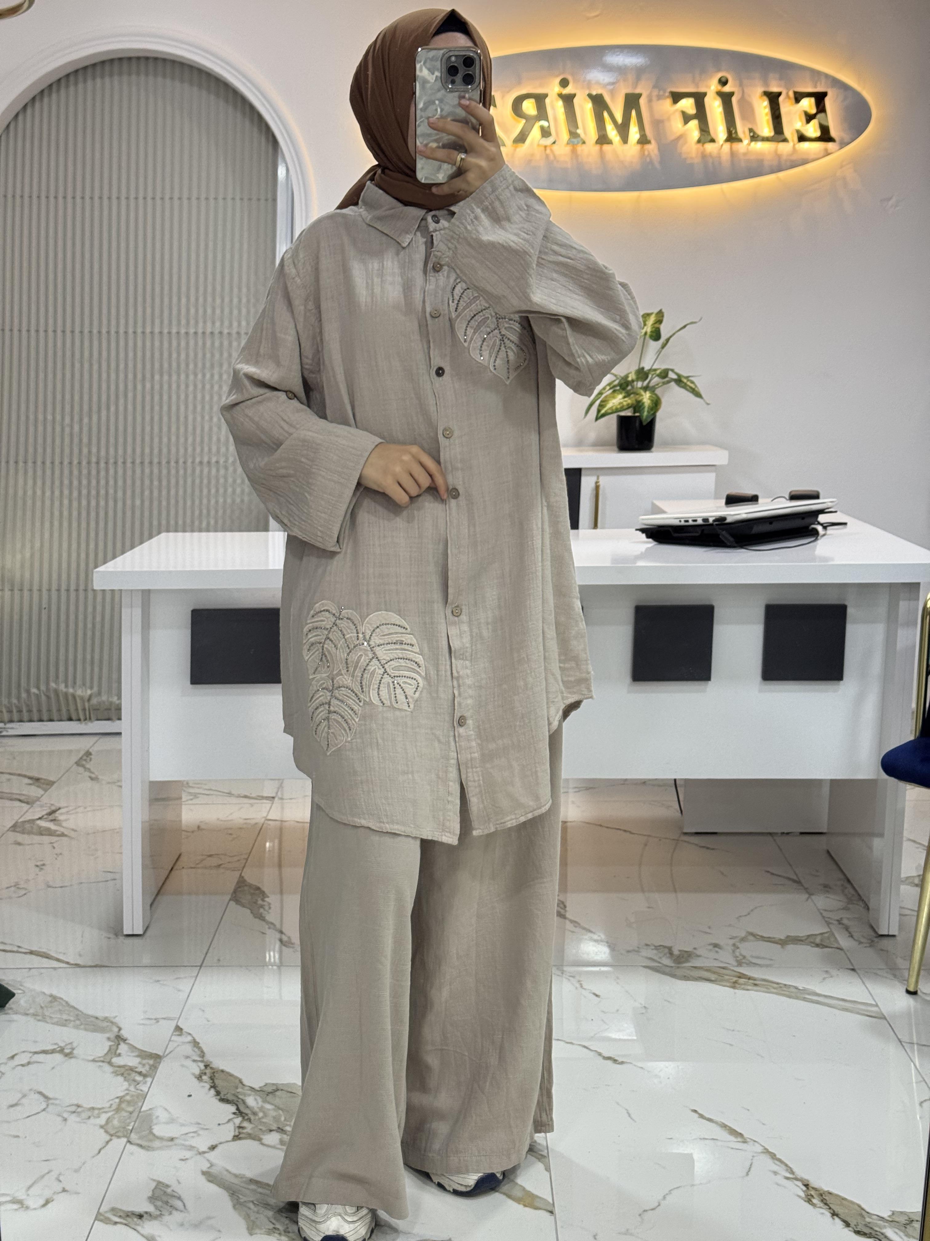 PAMUK KETEN KUMAŞ AİŞE TAKIM TAŞ RENGİ