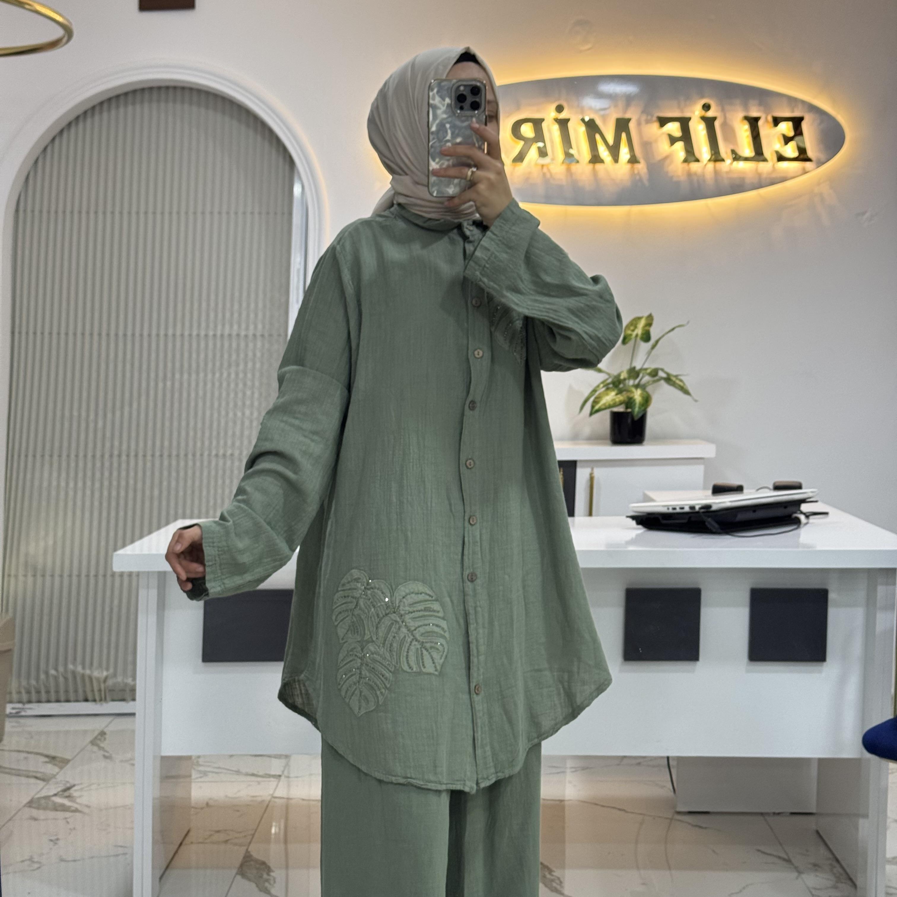 PAMUK KETEN KUMAŞ AİŞE TAKIM MİNT YEŞİLİ