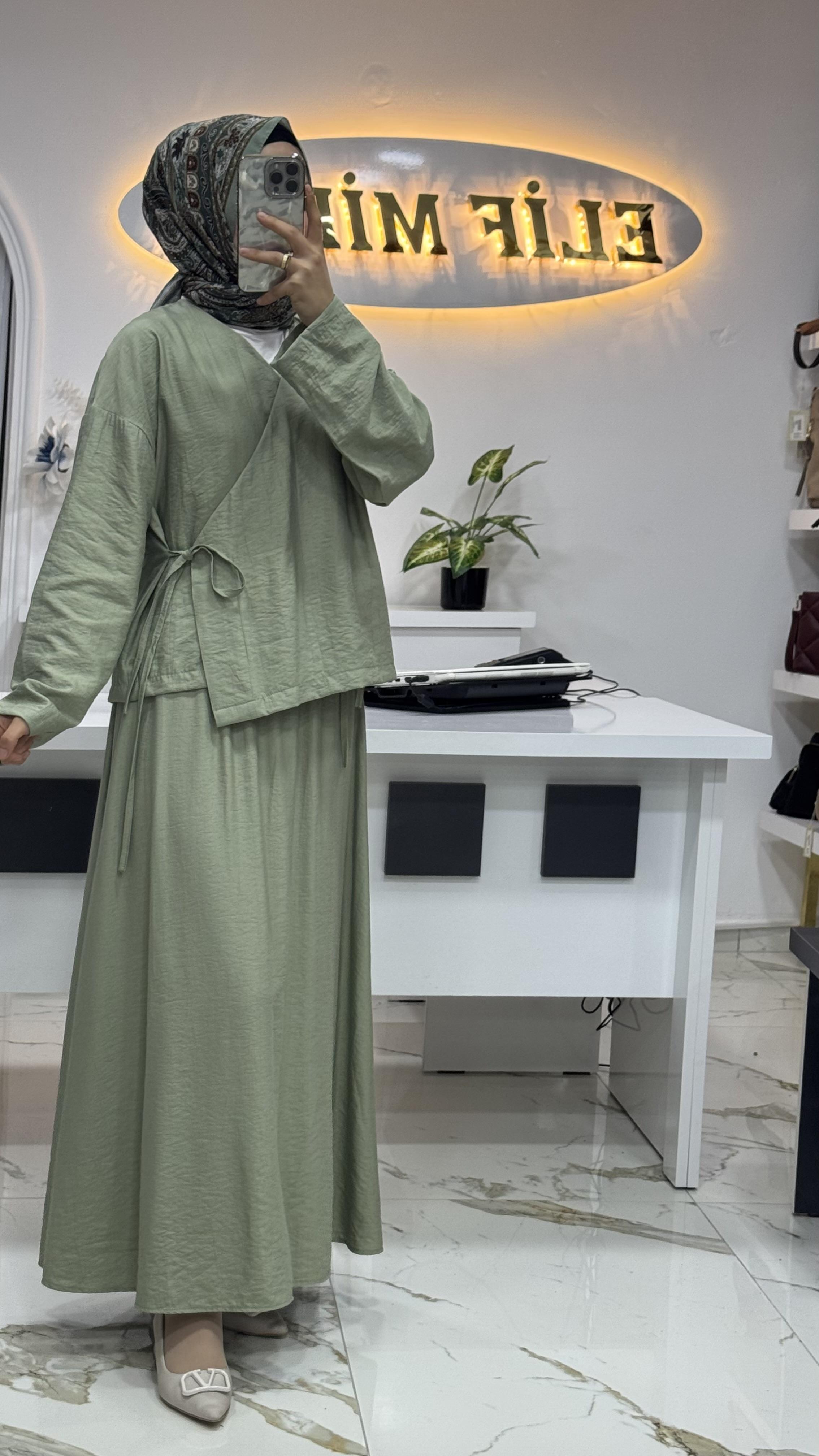 BAĞLAMA DETAYLI ETEKLİ TAKIM MİNT YEŞİLİ