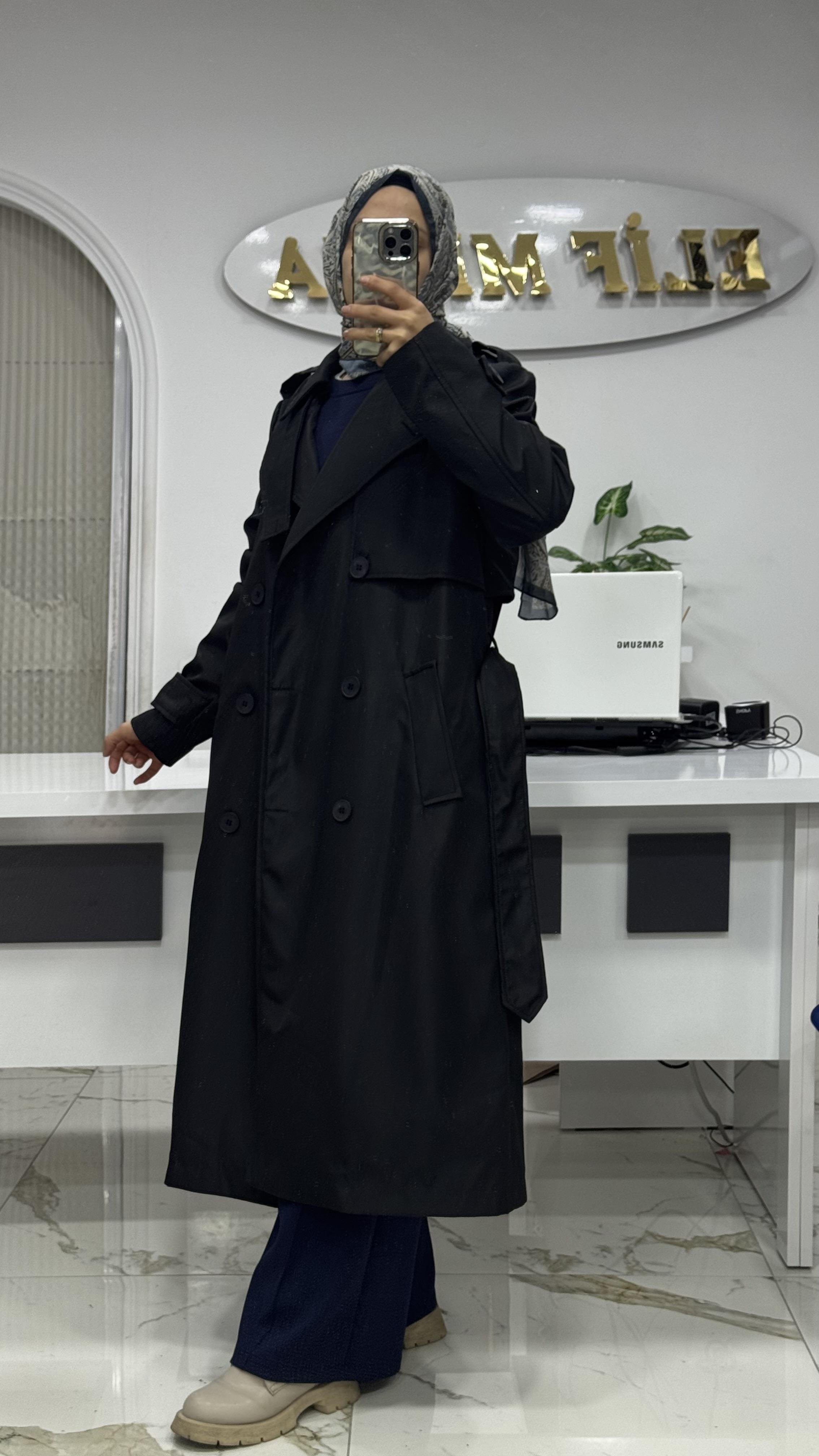Klasik trençkot gibi bol değil, tam böyle bedene oturan, toparlayan bir kalıbı var 🫶